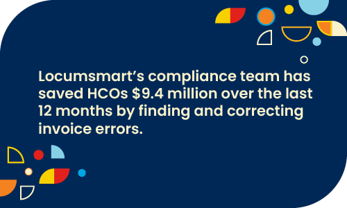 “A good compliance check weeds out the overbilling before passing it along for review and approval,” says Eric Landstrom, senior director of finance and operations at Locumsmart. “It’s taking work off your plate.”